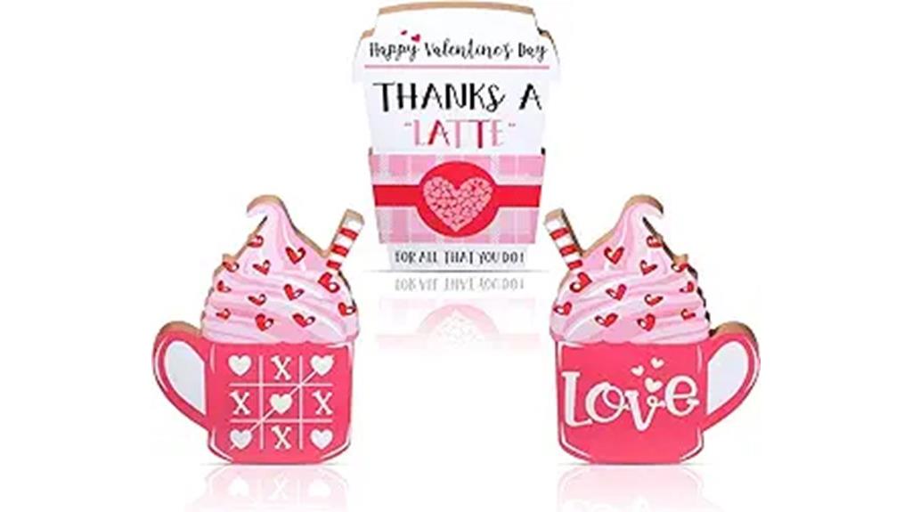 If you’re a coffee lover wanting to elevate your Valentine’s Day celebration, the Yalikop 3 Pieces Valentines Day Tiered Tray Decor is an excellent choice. This charming set includes three wooden signs that feature classic Valentine’s Day elements, like cake patterns and love quotes. Each piece is durable and resistant to fading, ensuring they look great year after year. Measuring around 6.3 x 4.5 inches, these signs fit perfectly on tiered trays, dining tables, or shelves. They make thoughtful gifts for friends and family, enhancing the atmosphere in any room while celebrating love and coffee in style.
